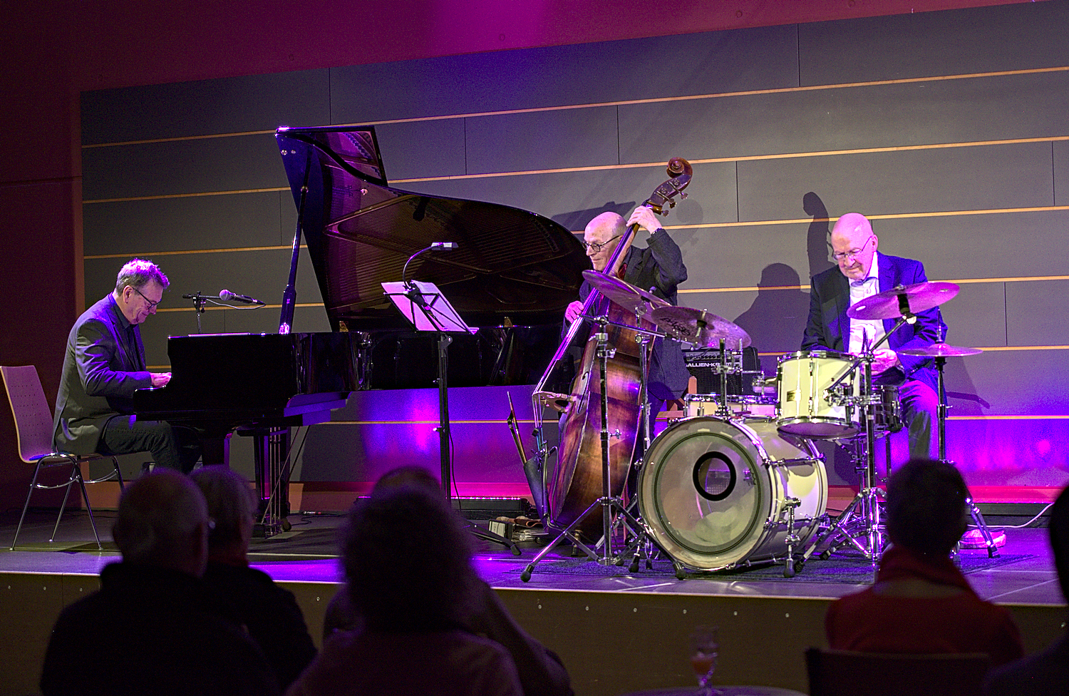 Das Premierenkonzert des Trios in Bruchsal ein voller Erfolg! Sommerfeeling pur! Meisterhaft gelang es dem Trio das Publikum zu begeistern. Die Musikauswahl war gekonnt auf den vorherigen Vortrag von Rainer Kaufmann zugeschnitten. Wolfgang Schürmann brillierte mit seinen Soli an den Drums, Andreas Scheer zauberte an seinem Contrabass und Siegfried Liebl begeisterte mit seinem unvergleichlichen Klavierspiel.